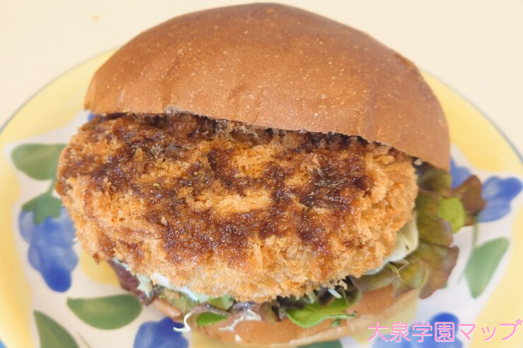 バンズからはみ出るくらい大きいコロッケは、食べ応え抜群です。
